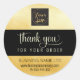 Magnifique autocollants/étiquettes professionnels en or avec un joli message de design de topographie noire avec "Merci pour votre commande" note. AJOUTE TON LOGO. Vos clients/clients apprécieront votre note et ces élégants autocollants, qui donnent la touche finale à votre emballage de commande. Faux arrière - plan de feuille d'or. Personnalisez-les avec votre nom d'entreprise et votre site Web. Ajoutez-les à vos sacs-cadeaux, boîtes-cadeaux et enveloppes. Élégants autocollants ronds imprimés avec un look de feuille d'or. Glam Merci Gold Black Ajoutez Votre Logo Classic Round Sticker.