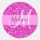 Glam rose et magenta parties scintillant scintille le nom de monogramme blanc et autocollant rond classique initial. Votre nom personnalisé et votre monogramme sont écrits dans un élégant script écrit à la main avec un arrière - plan rose. Vous pouvez modifier la couleur du texte, le style et la taille de police à l'aide de l'option personnaliser. Un cadeau d'anniversaire ou de Noël parfait !