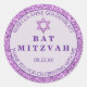 Ces autocollants ronds de glam violet personnalisés sont faciles à customiser et font un grand ajout à vos faveurs Bat mitzvah. Placés sur un arrière - plan violet lavande pastel pâle et entaillés dans une parties scintillant faux violet, les quatre modèles de texte en violet royal foncé peuvent être édités avec votre libellé préféré pour l'autocollant parfait. Terminés avec une fausse étoile de parties scintillant violet de David en haut, ces autocollants personnalisés sont prêts à aider à votre planification Bat mitzvah.