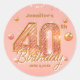 Sticker Rond Glamorous Chic Glitter Rose Gold 40th Birthday