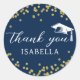 These Glitter Dust Confetti Graduation Thank You Classic Round Sticker add a sparkling touch to your celebration. Featuring glitter dust confetti on a royal blue background, "Thank You" in elegant Kimberly script, and the graduate's name in casual David Libre font , these personalized favors are perfect for making guests feel appreciated at any graduation party.