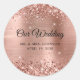 Créez vos propres autocollants de faveur de mariage. Parties scintillant d'or rose brillant sur le dessus et le bas, sur un rose d'or brillant faux rose brillant style métal brossé sombre feuille. Customisez les styles de police pour créer votre propre design d'autocollant de faveur pour sa célébration mariage spéciale. Une calligraphie classique et élégante associée à une police serif casquette.
