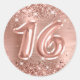 Sticker Rond Glitterie Rose Gold Foil Numéro 16 Anniversaire