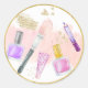 Ces adorables autocollants présentent des illustrations de maquillage aquarelle avec des ornements de parties scintillant en faux or.