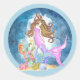 Autocollant rond coloré avec notre globe d'aquarelle de sirène violet.