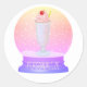Illustration d'un milk-shake tourbillonnant à la crème glacée à la fraise dans un verre dépoli placé dans un globe de neige. Fait en rose et violet et prêt à personnaliser.