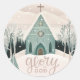 Sticker Rond Gloire à Dieu | Église d'hiver de Noël religieuse