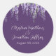 Ces autocollants de mariage floraux romantiques présentent un violet foncé avec des fleurs de glycine aquarelle violette. Une vigne délicate de glycine et de verdure est représentée en haut.