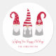 sticker minimal pour vos cartes de Noël, la correspondance et les cadeaux avec trois mignons gnomes de Noël nordique avec des casquettes de style scandinave rouge et blanc et des tuniques gris clair. Personnalisez un "Joyeux Fêtes, "Joyeux Noël", etc., saluant dans un script rouge et ajoutez votre nom dans une simple typographie moderne.