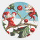 Funny vintage Christmas illustration of little white bearded gnomes dressed like Santa, painting holly berries in the snow. Published by L. Prang & Co.