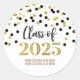Classe de nom personnalisé de 2025 autocollants de graduation avec motif de confetti en or et noir.