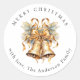 Sticker Rond Gold Christmas Bells Ribbon Greenery Holiday