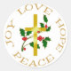 C'est un joli autocollant pour une utilisation polyvalente pendant la saison des Fêtes, et il porte la véritable signification de Noël en elle. Il comporte une croix d'or avec une branche de saint, représentant les épines de la couronne du Christ, la vie éternelle, et le sang versé pour notre salut. L'image est encerclée par le texte Love Hope Peace Joy en or.