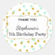 Soirée d'anniversaire de confetti vert or et menthe merci sticker.