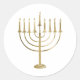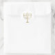Cet autocollant présente une menorah dorée sur un arrière - plan blanc. Complément parfait à vos mailings et cadeaux de vacances pour ajouter un peu de décoration.