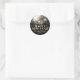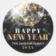 Add a festive finishing touch to your New Year’s Eve celebration with this round sticker featuring a bold black background and stylish gold details. "Happy New Year" is displayed in a mix of white and gold serif fonts for a modern and celebratory look. Below the greeting, there’s space to include the family or host’s name and the year.