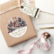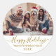 Élégant Script moderne Or et blanc "Happy Holidays" Calligraphie Script Famille Photo Noël Grand Sticker rond. Idéal pour les enveloppes d'accessoires de messagerie et les autocollants-cadeaux.