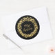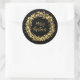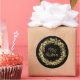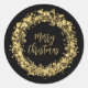 Des étoiles dorées, des cercles et des points entourent les mots "Joyeux Noël" sur les autocollants ronds noirs sont parfaits pour vos cadeaux de vacances et plus encore. CORRESPONDRE des articles dans notre magasin.