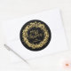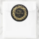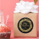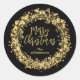 Des étoiles, des cercles et des points dorés scintillent autour des mots "Joyeux Noël" et de vos noms sur des autocollants ronds noirs, parfaits pour vos cadeaux de vacances et plus encore. CORRESPONDANCE d'objets dans notre collection.