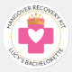 The perfect hangover kit stickers for the kits you'll hand out at your bachelorette party. With a pretty tiara in faux gold foil, a hot pink cross with a heart, and your custom text surrounding the design.