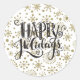 Sticker Rond Gold & White Retro Snowflakes HEUREUX VACANCES Fav