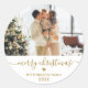 Élégant Script moderne Or et blanc "Joyeux Noël" Calligraphie Script Famille Photo Noël Grand Sticker rond Vacances Noël. Idéal pour les enveloppes d'accessoires de messagerie et les autocollants-cadeaux.