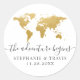 Carte du monde de l'or Faux destination voyage de mariage thème favoriser étiquette pour un moderne et réception ou fête. Les polices et les couleurs peuvent également être modifiées pour fonctionner avec n'importe quel jeu de couleurs.