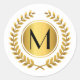 Sticker Rond Golden Laurel Wreath Monogrammé