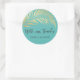Avec un style tropical contemporain, cet autocollant de remerciement bleu caraïbe présente une façade de palmier doré en fausse feuille avec un texte de script moderne et les noms de mariée et mariée. Personnalisez avec vos noms ou pour utiliser cet autocollant à d'autres fins, choisissez simplement "customisez-le" et supprimez l'image texte "avec nos remerciements" et modifiez les noms avec votre texte souhaité.