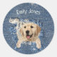 Sticker Rond Golden Retriever chien dans trou de denim bleu