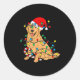 Sticker Rond Golden Retriever Dog Christmas Lights Xmas Pet Dog