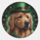 Sticker Rond Golden Retriever Dog in St. Patrick's Day