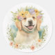 Sticker Rond Golden Retriever in Laurel Wreath