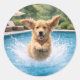 Sticker Rond Golden Retriever Puppy Pool Plunge