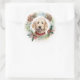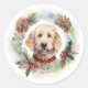 Sticker Rond Goldendoodle Christmas Wreath Festive Pup