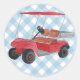 Sticker Rond Golf Panier Plaid Blue White Preppy Country Club