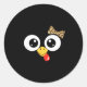 Sticker Rond Googly-eyed Turkey With Leopard Bow, Funny Cartoon