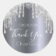 Sticker Rond Gouttes de paillettes d'argent nom merci