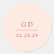 Des autocollants de mariage modernes avec un design géométrique simple et minimal avec votre deux monogramme initial et votre date mariage avec une petite ligne horizontale entre les deux. La palette de couleurs peut être modifiée dans l'outil d'édition de conception.