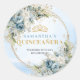Sticker Rond Graceful Dusty Blue Gold Greenery Quinceañera