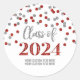 Classe de nom personnalisé de 2024 autocollants de graduation avec motif de confetti argent et rouge.