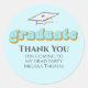This design features a graduation graduate grad modern, a thank you sticker favor label, a graduation grad party favor, a retro simple cool typography font, blue and grey, black and white, a minimalist minimal stylish trendy, a contemporary modern design style, a modern typography groovy script, graduation grad party supplies for cookie favor or bar treat label