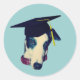Beau chien grisâtre portant une casquette de graduation drôle autocollant.