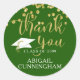 Confetti d'or et MERCI manuscrit avec le nom du diplômé et l'année de graduation avec une couleur verte changeante arrière - plan. Utilisez comme partie de remise de diplômes pour les autocollants ou merci les sceaux sur les enveloppes de papeterie. Contactez le concepteur si vous souhaitez que ce design soit modifié ou sur un autre produit.