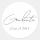Ajoutez une touche moderne et élégante à vos annonces de remise de diplômes ou invitations à des fêtes avec cet autocollant minimaliste d'enveloppe de graduation en noir et blanc. Doté d'une élégante typographie manuscrite qui dit "Graduate" avec une année de classe personnalisable, ce design simple mais sophistiqué complète n'importe quel style d'enveloppe. Parfaits pour sceller les invitations, les cartes de remerciement ou les faveurs de fête, ces autocollants offrent un look propre et contemporain pour correspondre à votre thème de graduation. Entièrement personnalisable pour convenir à votre style personnel.