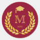 Sticker Rond Graduation Monogram Gold Laurel sur Maroon