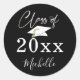 Sticker Rond Graduation Noir Blanc Script Classe Nom de l'année