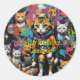 Graffiti Legend Street Cat Heureux Anniversaire Nom Sticker Classic Round. Personnalisez ce modèle avec votre salutation et votre nom. Portant un sweat - shirt à capuche coloré teinté de peinture, ce félin d'IA rebelle crée des peintures murales colorées dans les ruelles et les bâtiments abandonnés. Ses yeux pointus scintillent la ville à la recherche d'une toile parfaite, mêlant art de rue et agilité féline, véritable artiste underground.