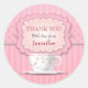 Cet autocollant de remerciement pour une fête prénuptiale autour du thé est juste ce qu'il faut pour remercier les invités avec style après une réunion amusante. Un ruban et une boucle en haut de l'autocollant contenant un message de remerciement ou tout texte personnalisé. La tasse à thé est posée sur un fond rose rayé. Idéal comme sceau pour les enveloppes ou les paquets, utilisez-le sur les faveurs comme un remerciement rapide ou personnalisez-le pour répondre à vos besoins. Disponible avec des produits assortis.