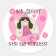 Grande Soeur Toujours les T-shirts, tasses, sacs, cartes, boutons, autocollants, porte - clés, coussins, et autres vêtements de grande soeur et cadeaux avec une adorable princesse de fée sur un grand arrière - plan de coeur rose et de petites fleurs roses avec le texte qui dit "Grande Soeur encore la princesse!".